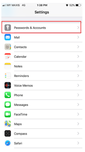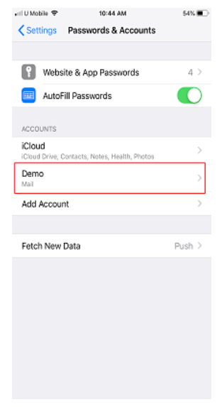11. In order to set up additional settings for mail accounts, you need to return in previous menu Passwords & Accounts and click on your newly created accounts.