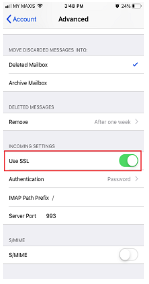 14. In order to set up settings for Outgoing Server, you will need to enter the Outgoing Mail Server via clicking on the SMTP setting and then click on Primary Server. Please toggle the Use SSL and ensure that the port used is 465.